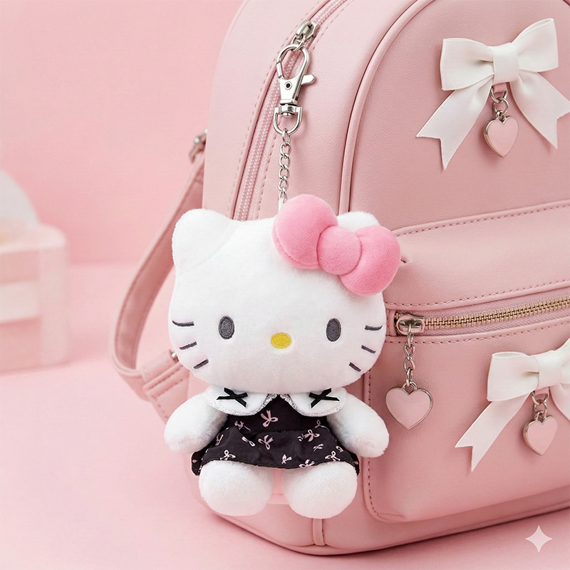 [KS-16] 헬로키티 블랙리본 드레스 키링(12cm)