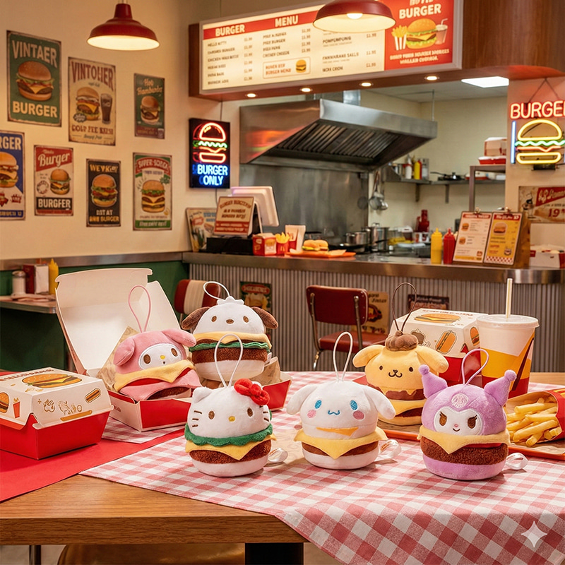 [G-117] 산리오 패밀리 버거 키링박스(6~10cm)