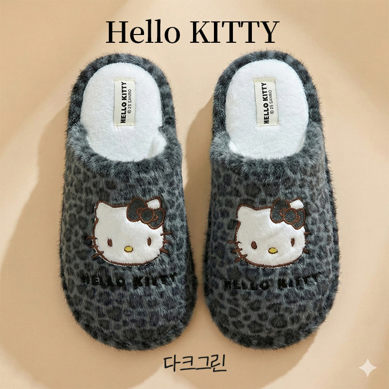 ![]() [S-11-dark] 헬로키티 호피 따뜻 미끄럼방지 슬리퍼(다크크린)