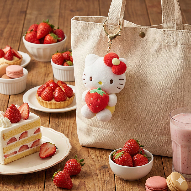 [KS-9] 헬로키티 핑크딸기 안은 인형키링(12cm)