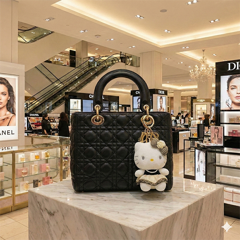 [KS-13] 헬로키티 블랙체크 모던 인형키링(14cm)