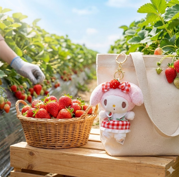 [KS-17] 마이멜로디 딸기 체크 인형키링(12cm)