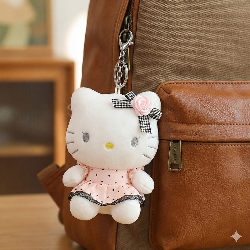 [KS-12] 헬로키티 핑크 땡땡이 인형키링(12cm)