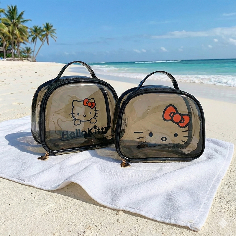 ![]() [B-10] 헬로키티 투명 블랙핸들 파우치