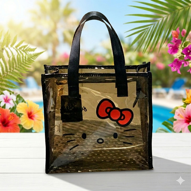 [B-67] 빨간리본 키티 페이스 방수투명가방