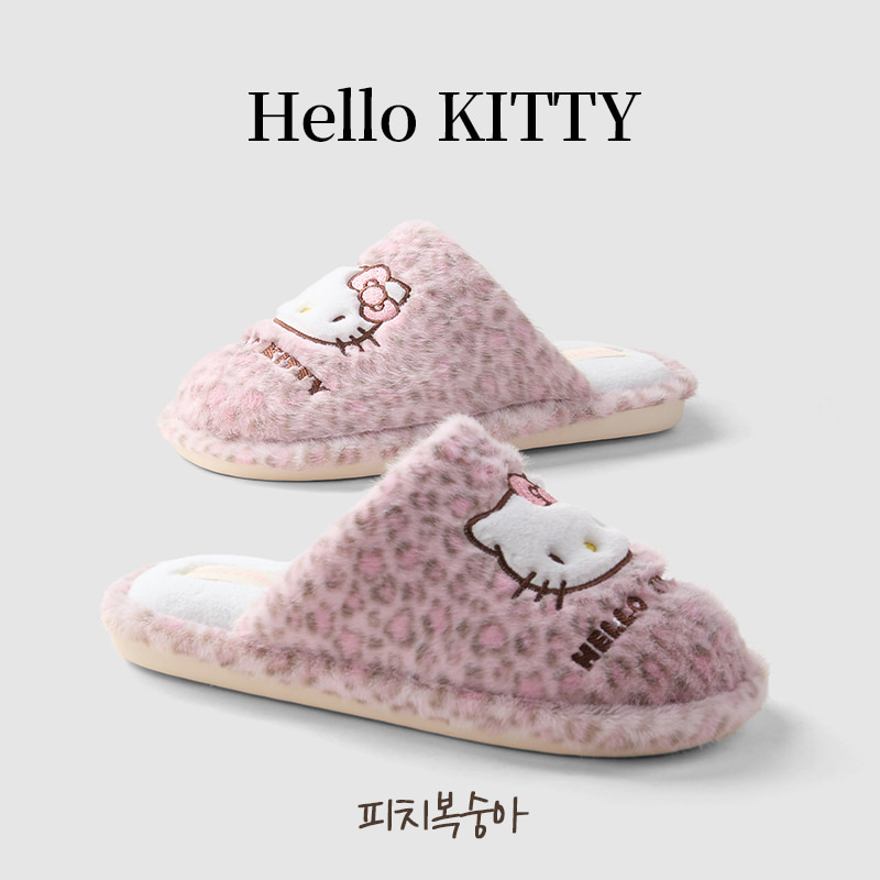 ![]() [S-11-pink] 헬로키티 호피 따뜻 미끄럼방지 슬리퍼(피치복숭아)